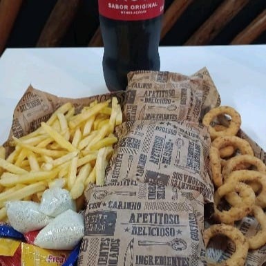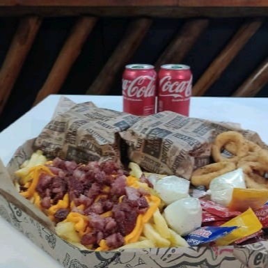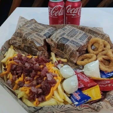 3 mini lanches opções, ( x- Bacon /x - egg /x - salada) + batata frita + onions ring Coca cola 2 lt