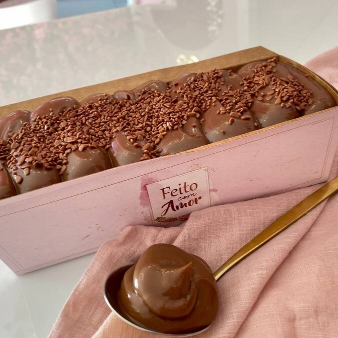 Brigadeiro cremoso de chocolate Belga, creme de Ninho e deliciosas uvas thompson. Peso médio 200g