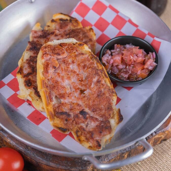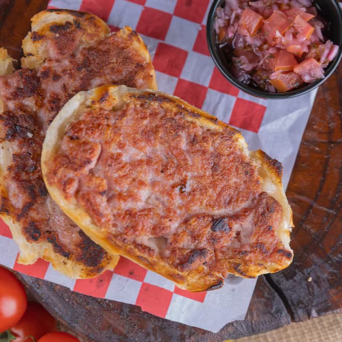 Desfrute de nosso aclamado 'Pão Chapado de Linguiça', uma verdadeira estrela entre os campeões de venda no . Este saboroso prato apresenta um robusto pão francês, generosamente recheado com requeijão cremoso e uma requintada linguiça artesanal de sua escolha - seja porco ou frango. Tudo isso pressionado na chapa até atingir a perfeição dourada. Para completar, é acompanhado de um vinagrete fresco e vibrante. Uma combinação de sabores inigualável que irá surpreender o seu paladar!