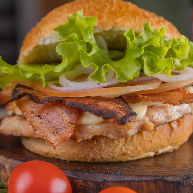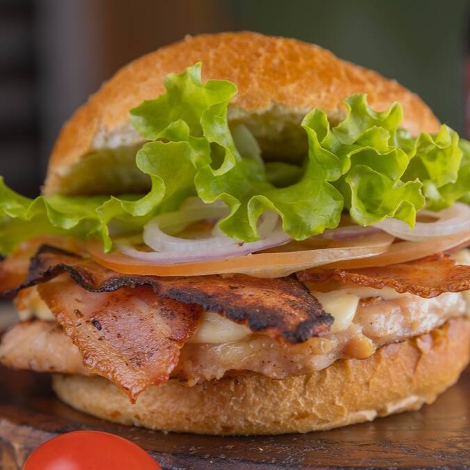 Saboroso X-Linguiça Salada Bacon da categoria 'X-Linguiça'. Este irresistível sanduíche é preparado com um marcante pão italiano, que envolve suculentos pedaços de carne à sua escolha. Acrescente a este, uma fatia generosa do nosso derretido queijo, e o crocante bacon da casa, que eleva o sabor a outro patamar. Para equilibrar, adicionamos a frescura da alface, a doçura do tomate e o toque picante da cebola roxa. Uma combinação perfeita para satisfazer os paladares mais exigentes.