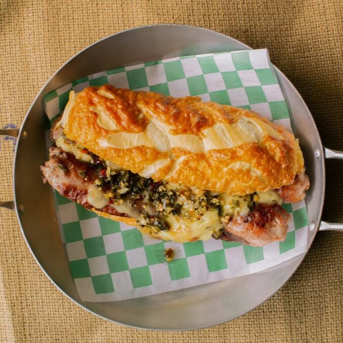Desfrute de uma deliciosa baguete, crocante por fora e macia por dentro, recheada com linguiça artesanal de porco, saborosa e suculenta, e queijo provolone, cremoso e com sabor marcante. Para aprimorar ainda mais a experiência, você pode escolher entre nosso vinagrete, leve e refrescante, ou nosso chimichurri, rico e cheio de sabor. Este é um dos nossos campeões de venda no , um prato que combina ingredientes de alta qualidade com a conveniência de uma refeição rápida, mas inesquecível.