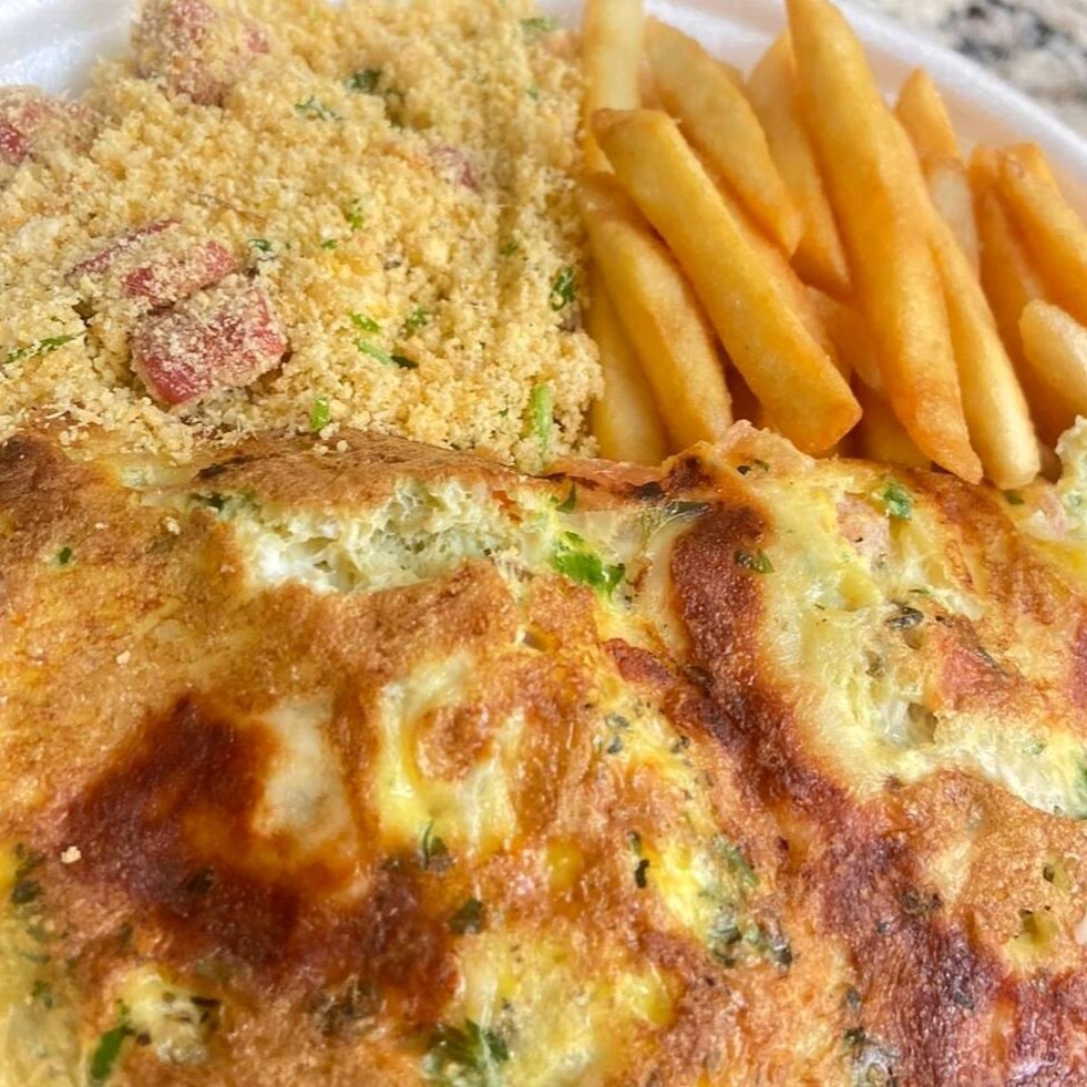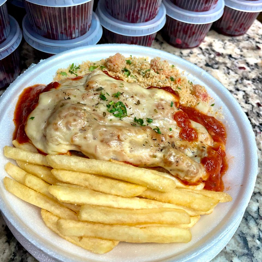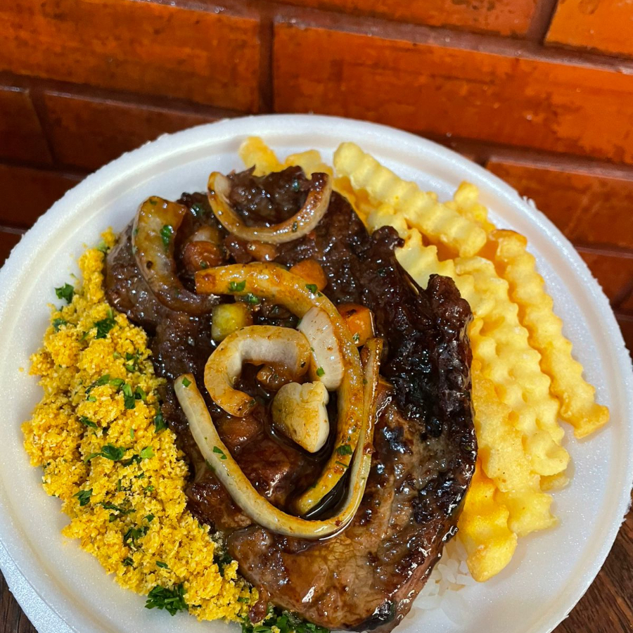 Arroz, Feijão, Farofa, Batata Frita e Salada