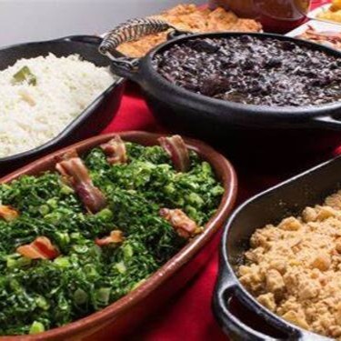 Feijoada completa, arroz, couve, laranja, farofa, torresmo e vinagrete - G