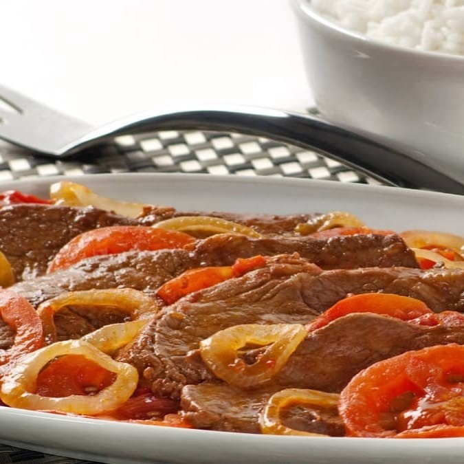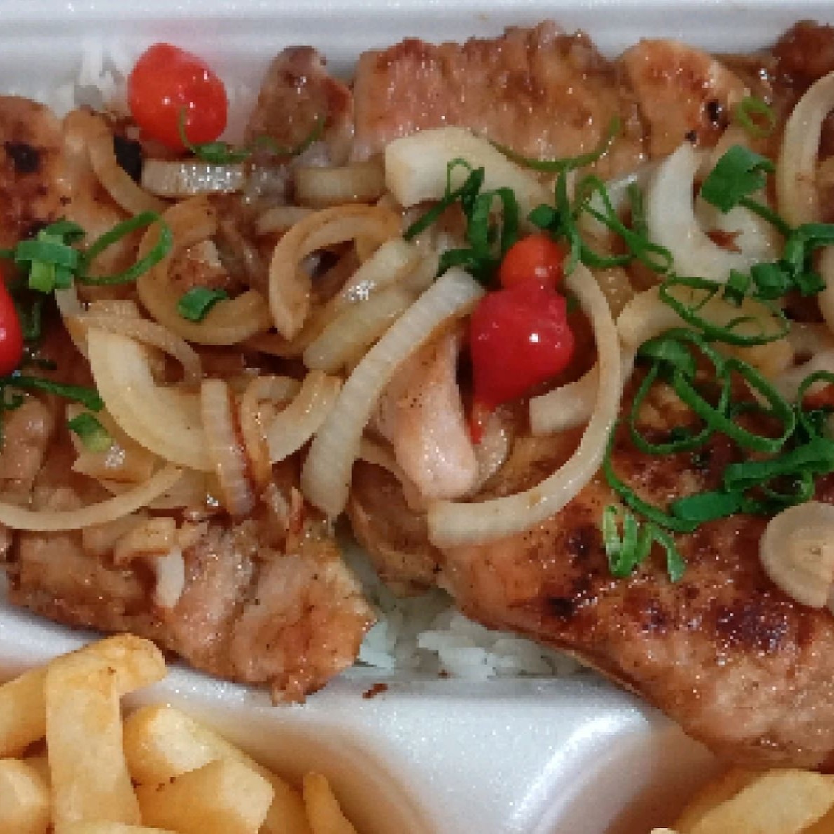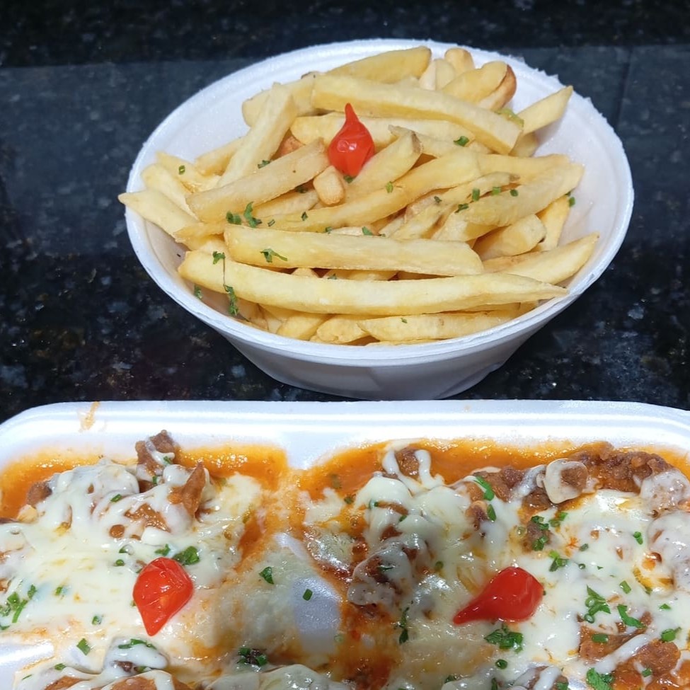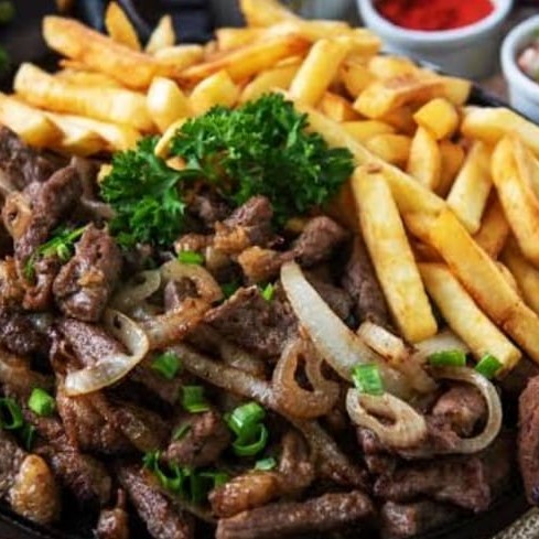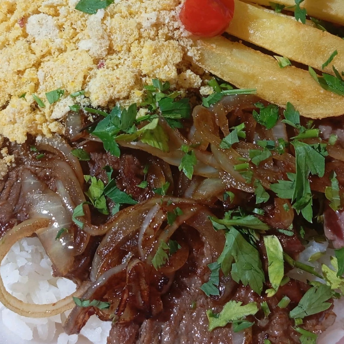 400gramas de alcatra acebolada com tomate,200gramas de fritas