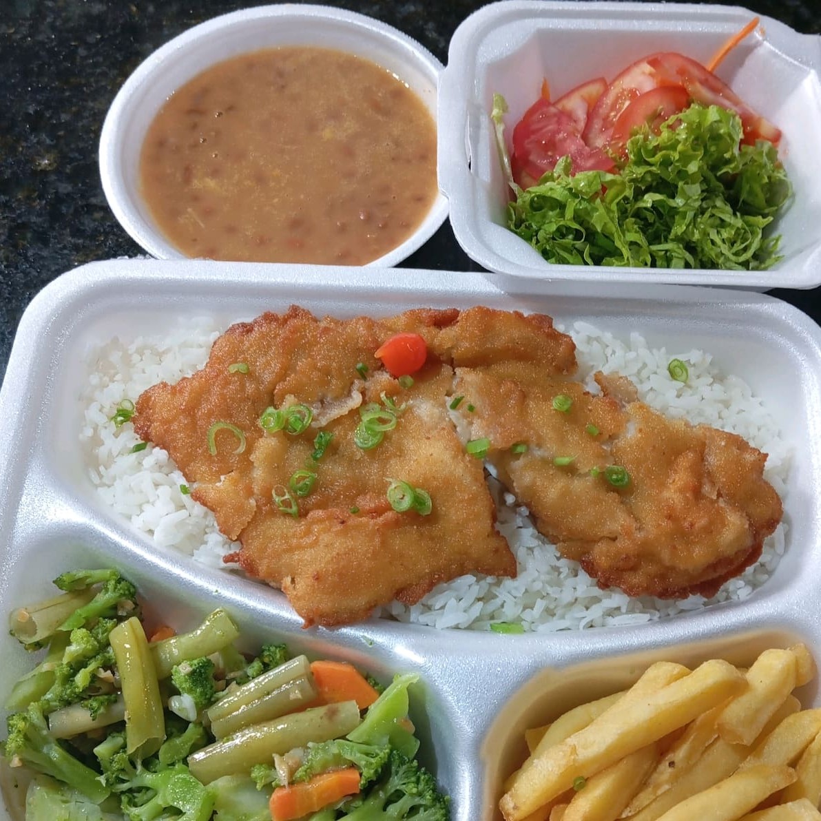 Marmita P - Frango Empanado Com Arroz, Feijão E Fritas.