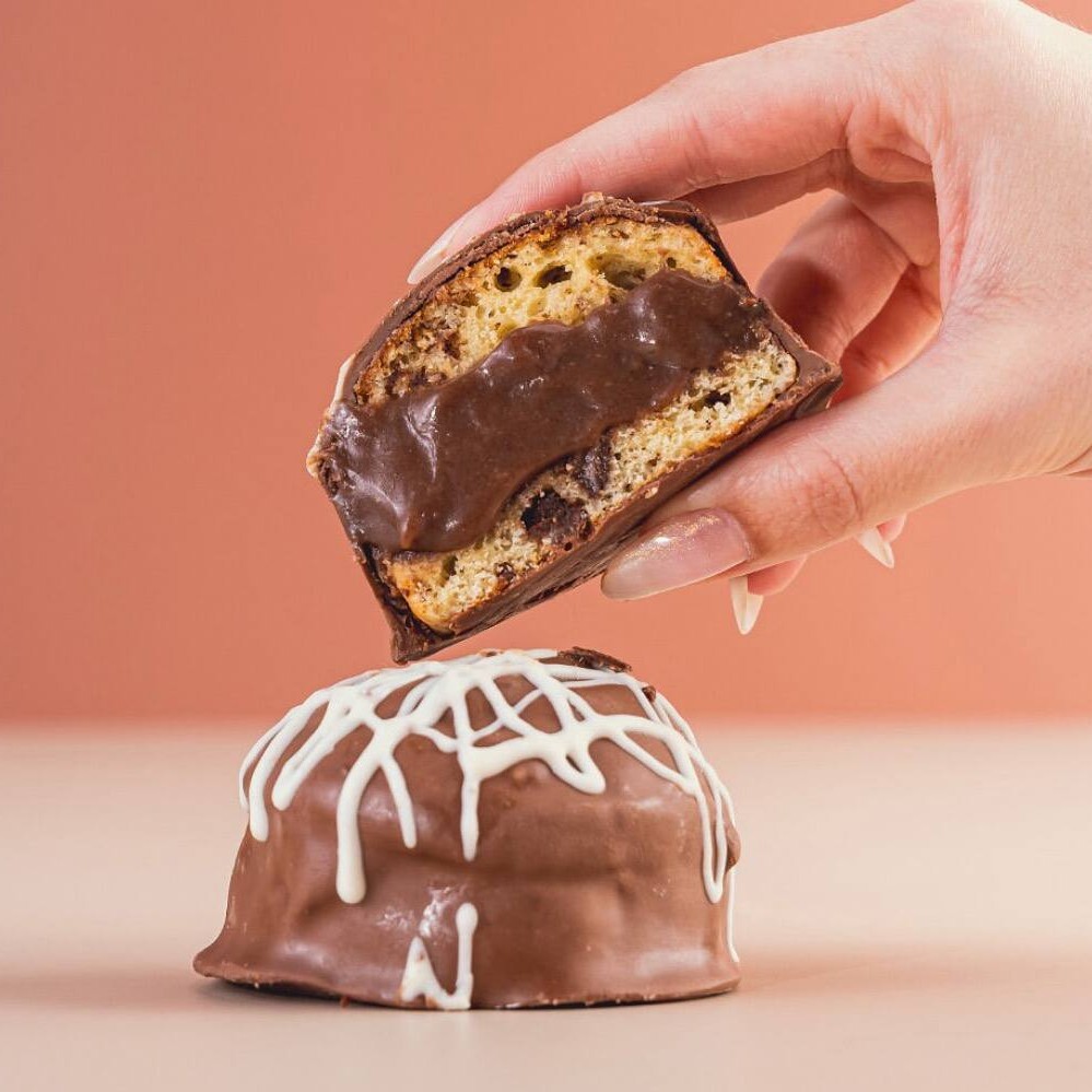 Massa macia de pão de mel com creme trufado de avelã irresistível e coberta com chocolate branco zero adição de açúcar. Rico em whey protein, baixo em sódio, com lactose reduzida. Perfeito para pré ou pós-treino — ou sempre que bater aquela larica!