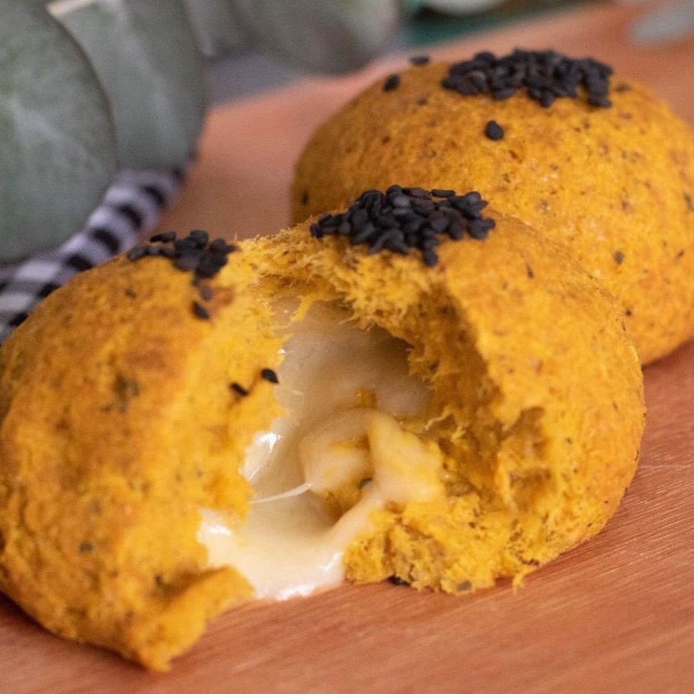 Nosso bolinho é sem glúten, tem a massa feita de moranga e frango e é recheado com queijo zero lactose. São 25g de proteína por unidade!