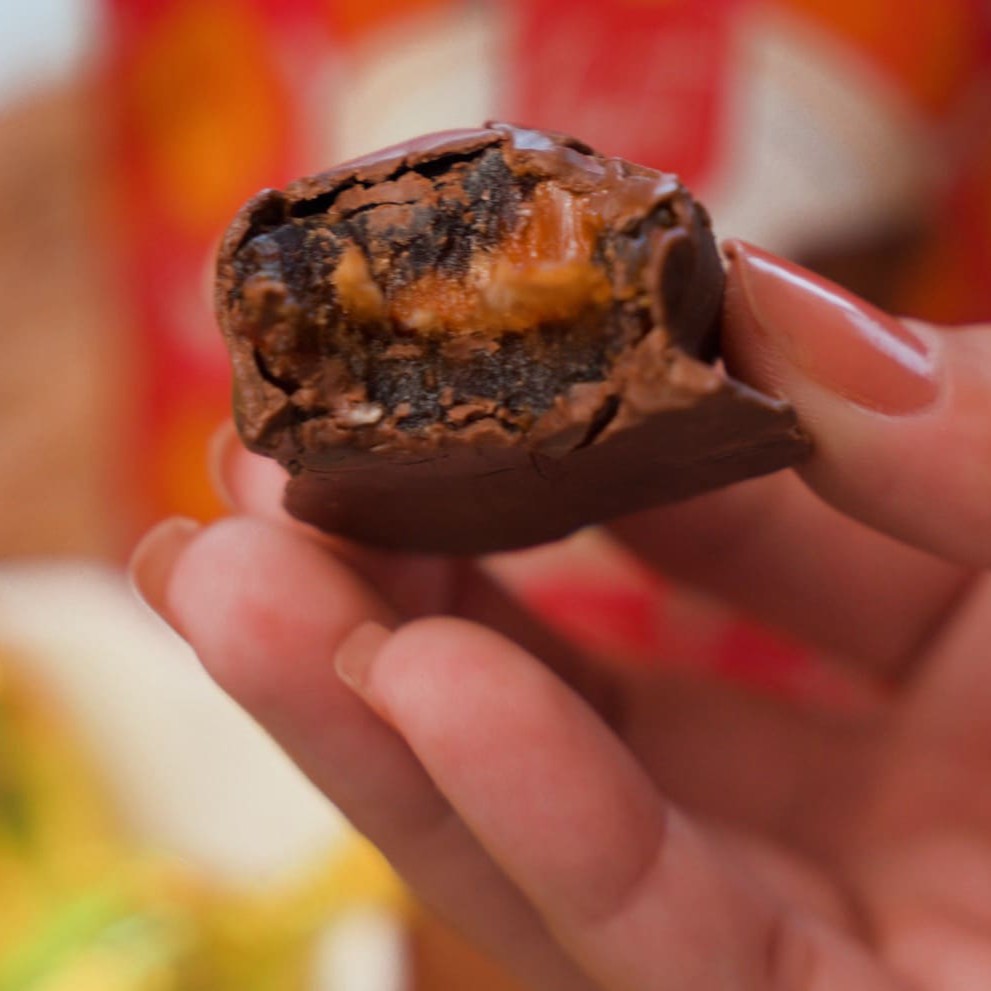 Recheado com pasta de amendoim integral e coberto com uma casquinha caprichada de chocolate belga 70% cacau.