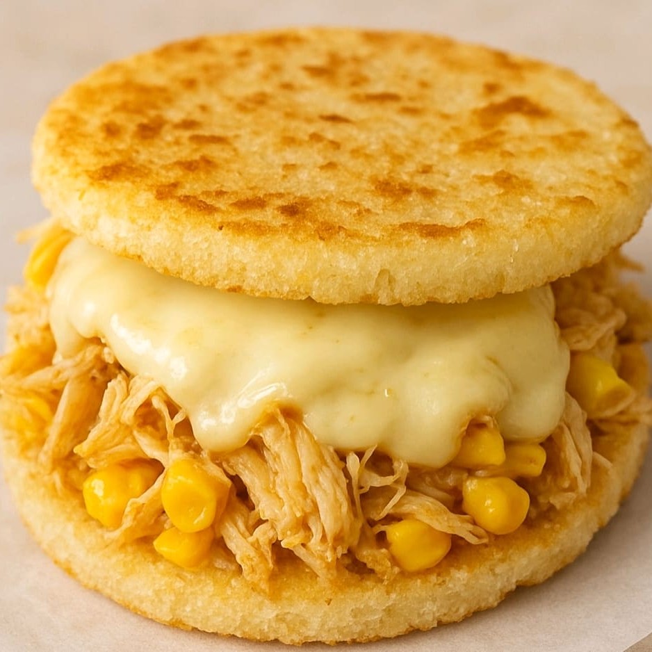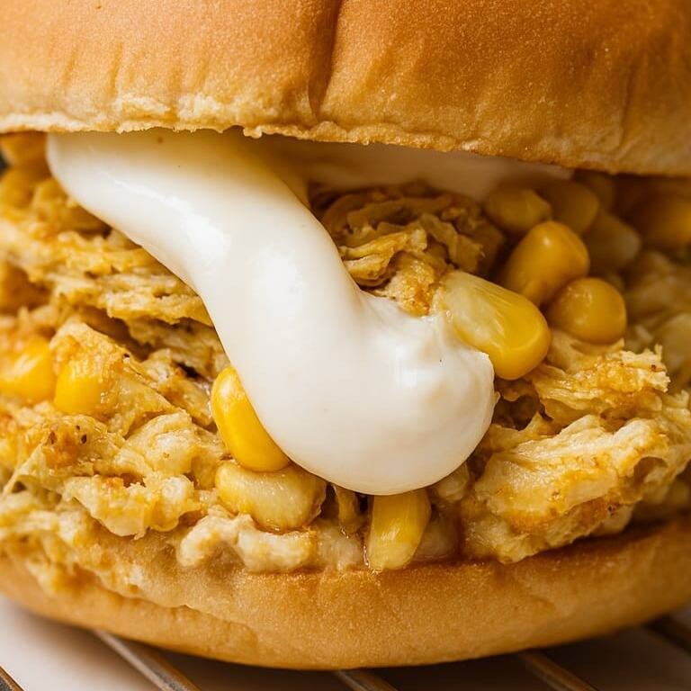 Frango desfiado cremoso com milho e Catupiry, no pão artesanal.