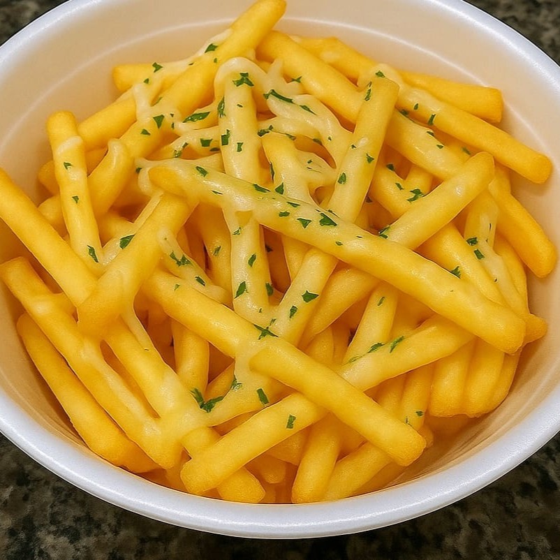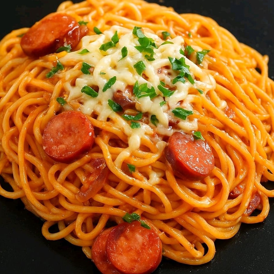 Macarrão salteado na chapa bem quente, com rodelas de salsicha douradinhas, cebola branca levemente caramelizada e milho docinho. Tudo envolvido no temperinho da chapa, com aquele fundinho tostado que dá sabor de comida de lanchonete raiz. Simples, suculento e viciante — perfeito pra matar a fome com estilo. 😋