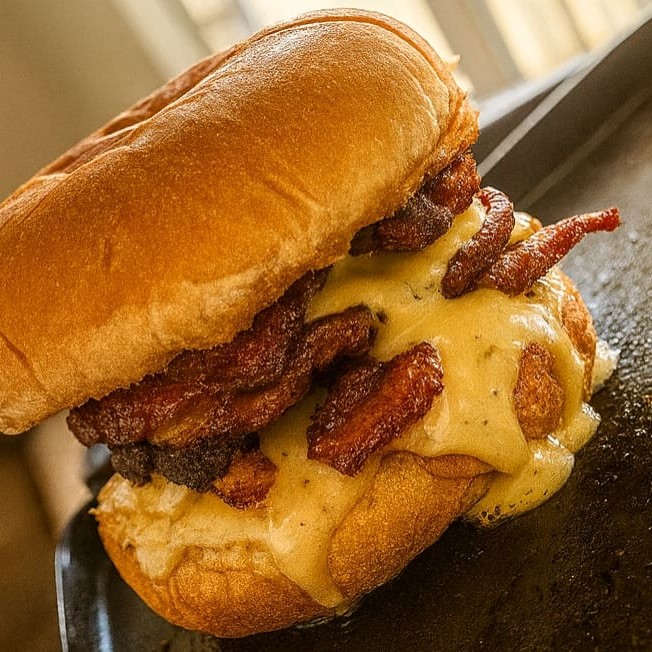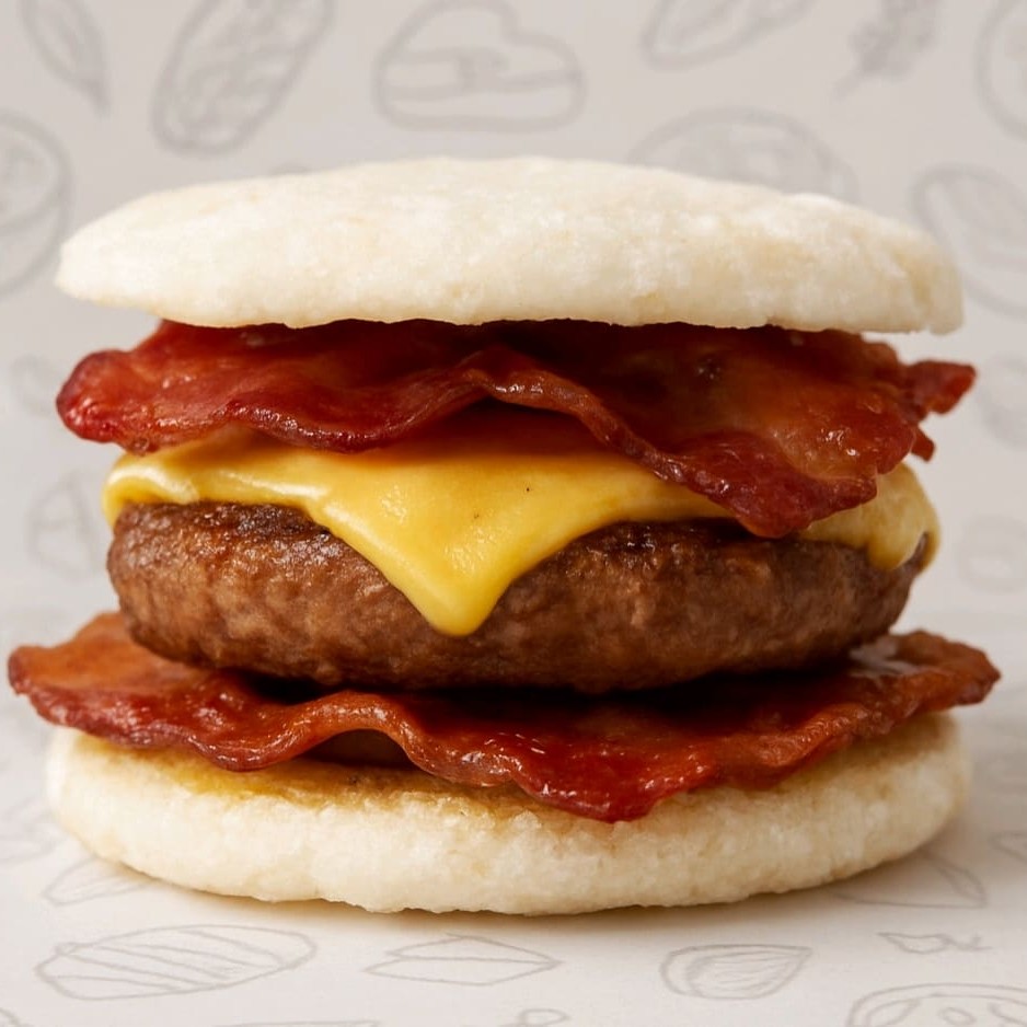 Pão macio recheado com hambúrguer artesanal suculento, coberto com queijo cremoso bem derretido e finalizado com bacon crocante, trazendo a combinação perfeita entre sabor intenso e textura