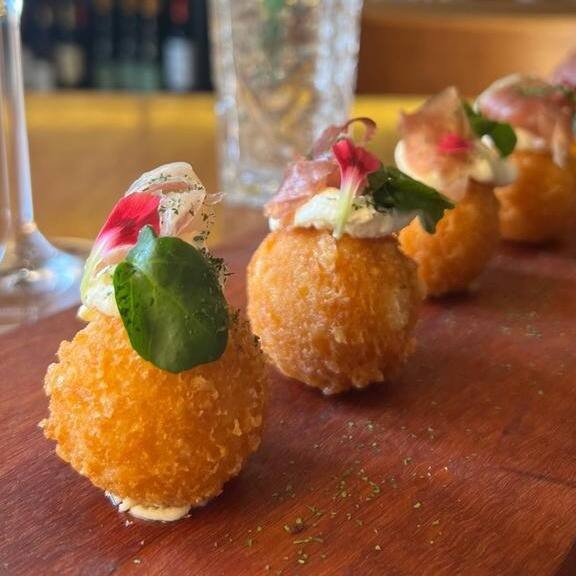 Bolinho crocante por fora e super cremoso por dentro, servido sobre molho da casa e finalizado com presunto Parma. Um clássico que nunca decepciona.