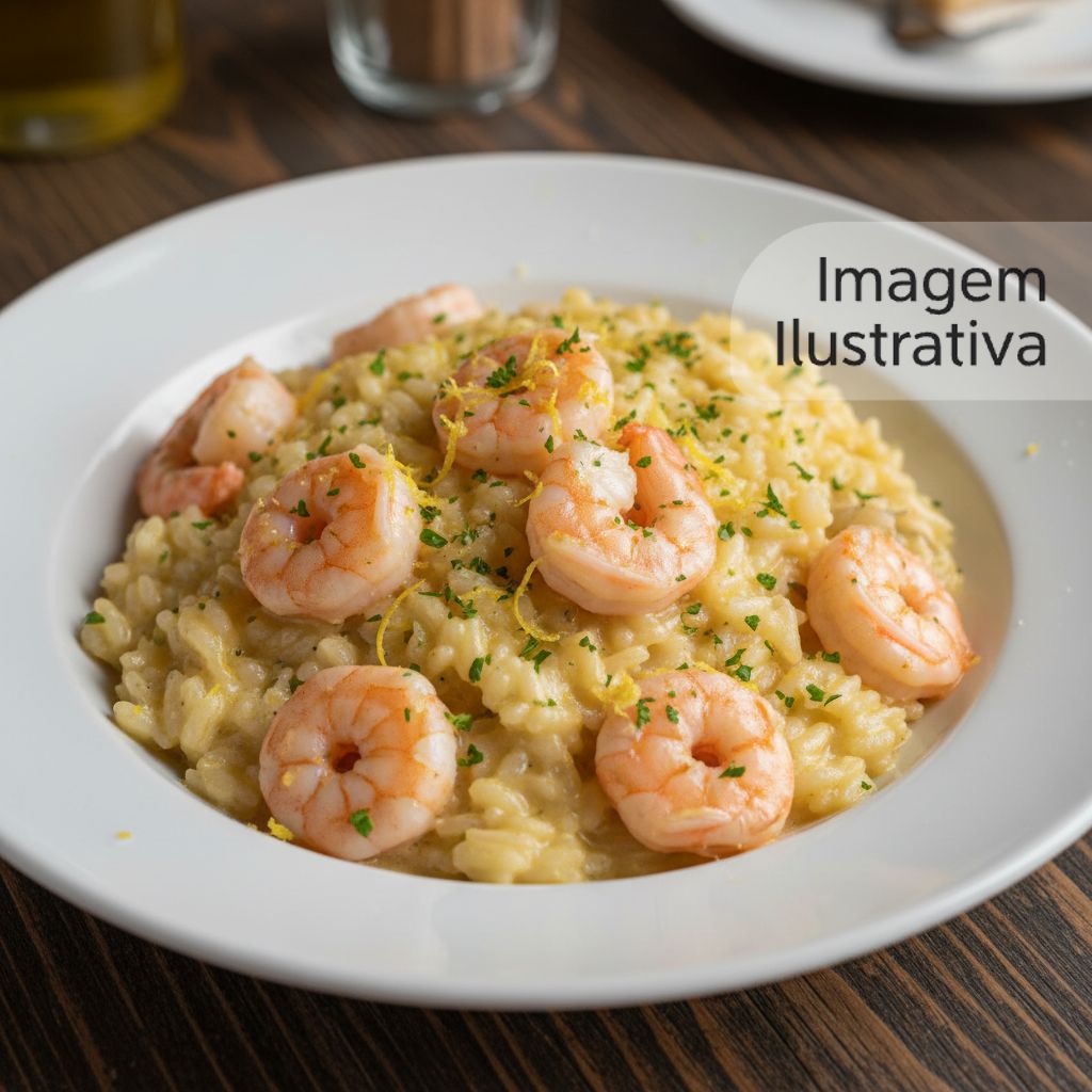 Delicioso risoto cremoso de camarões frescos com toque cítrico de limão siciliano.