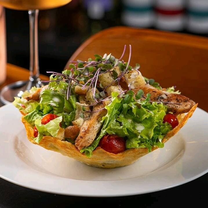 Mix de folhas frescas, frango grelhado suculento, avocado cremoso e tomate cereja.