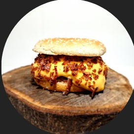 Blend bovino com cheddar cremoso, bacon crocante e barbecue.