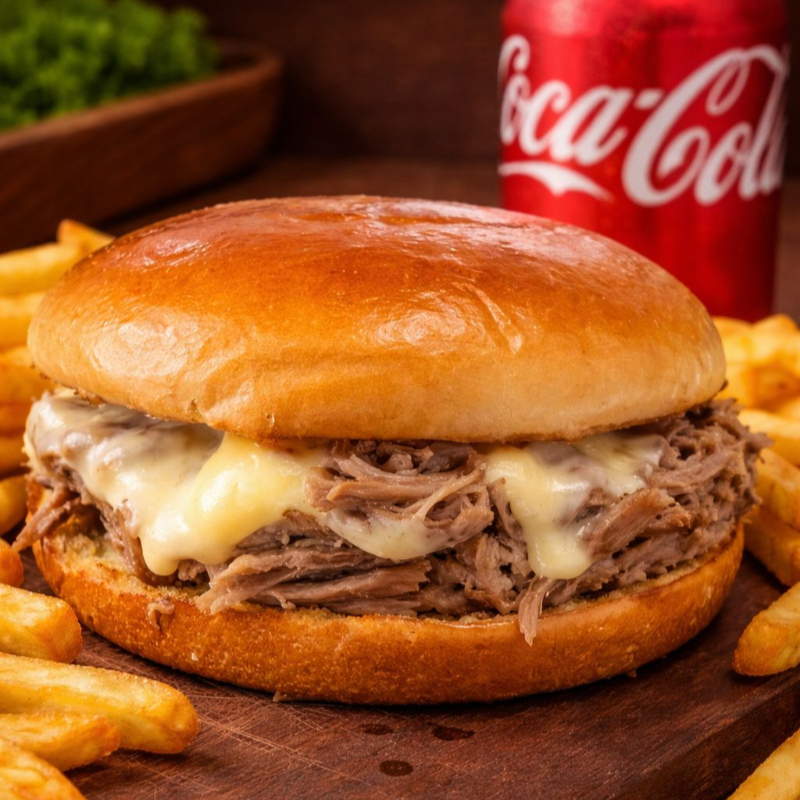 Pão brioche, cupim desfiado, requeijão cremoso, queijo prato, maionese especial.