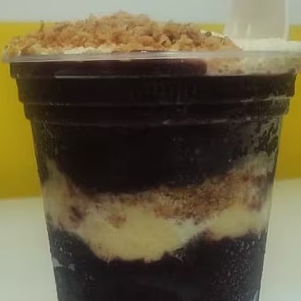 Delicioso açaí puro em um copo de 300 ml, perfeito para refrescar seu Dia com sabor e energia. Obs: Os copos vão montados com complementos escolhidos.