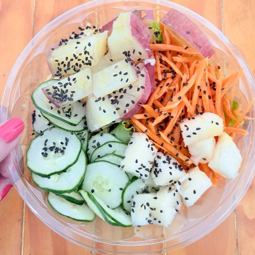 Perfeita combinação de sabores para quem deseja uma salada leve e agridoce: mix de folhas, frango levemente desfiado ao molho agridoce da casa, batata doce rústica, cenoura ralada manualmente, abacaxi picadinho, pepino japonês e gergelim para finalizar esta perfeição. . *Sem glúten* **Sem lactose** . Valor calórico aproximado da salada P (300g): 258kcal - sem o molho.