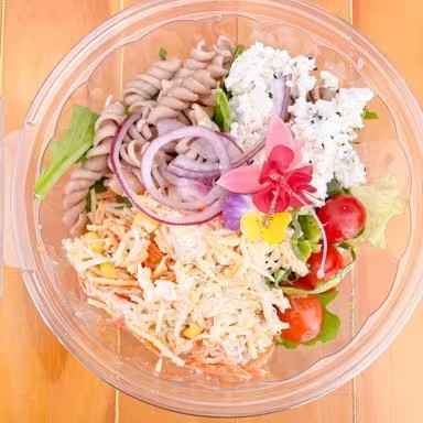 A salada mais pedida da Natureba. Deliciosa e especial combinação de sabores e ingredientes frescos e de qualidade, com mix de folhas, salpicão de frango (frango levemente desfiado, cenoura ralada, batata palha crocante e maionese artesanal feita na casa), macarrão com a massa de legumes, tomate picadinho, patê de ricota cremoso e cebola roxa ralada para dar o toque final de sabor inconfundível que você vai apaixonar.