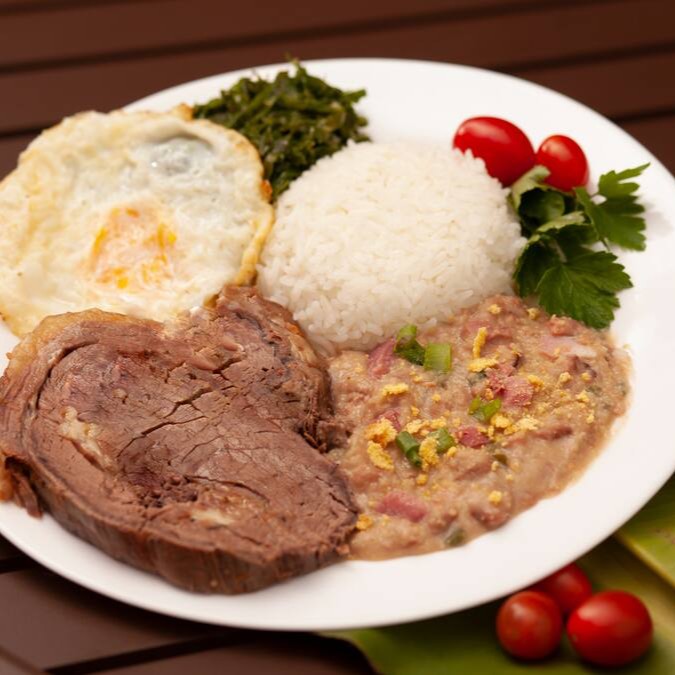 Costela de boi assada lentamente, macia e suculenta, preparada com temperos especiais do Chef que ressaltam todo o sabor da carne. Acompanha tutu à mineira, couve refogada fresquinha e ovo frito com a gema no ponto perfeito.