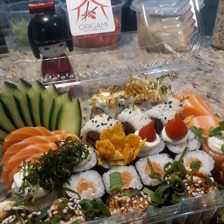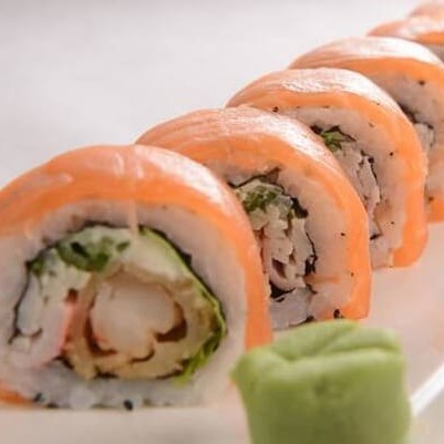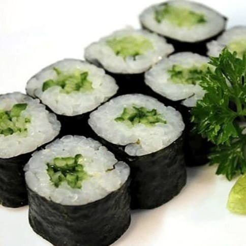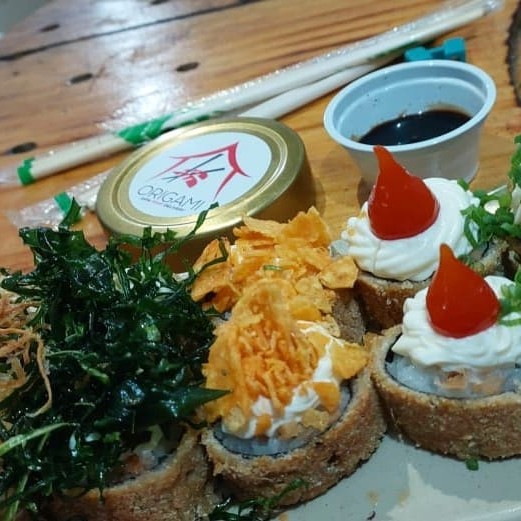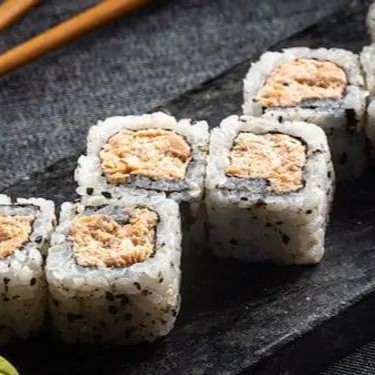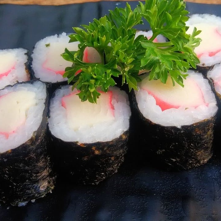 Enrolado de arroz com a alga por dentro. Além de suculento e bem recheado, a cada mordida se torna mais especial.