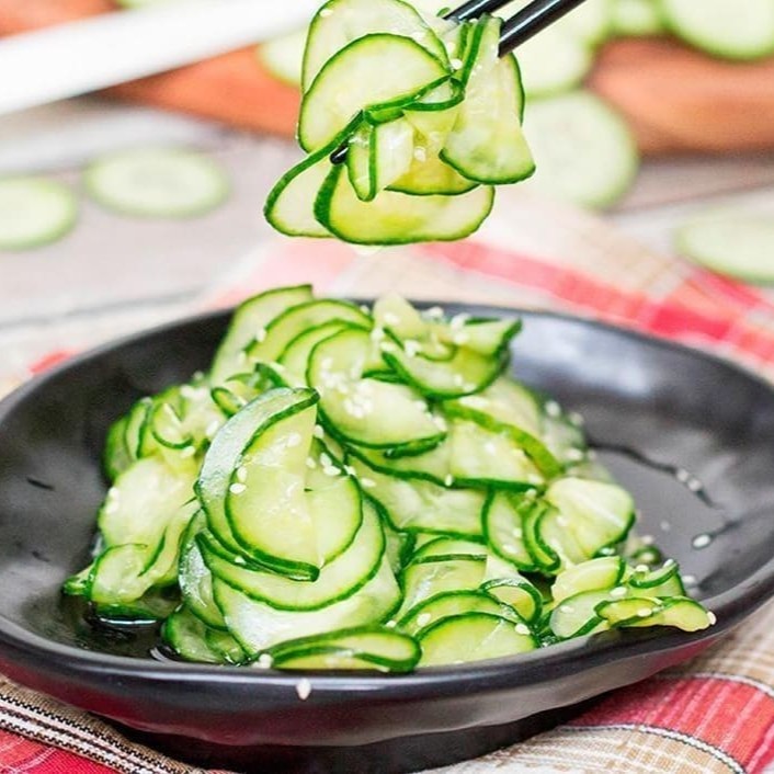 Salada de pepino Agridoce. Além de suculento e bem recheado, a cada mordida se torna mais especial.