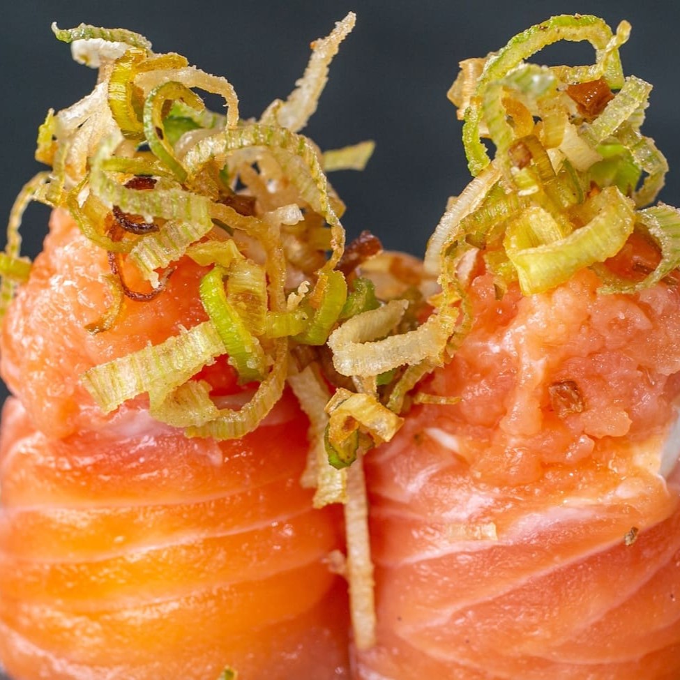 Maravilhosa salmão de 5und, especiaria da casa, com um sabor inesquecível e surpreendente.