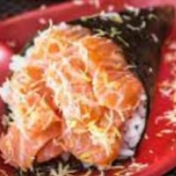 Recheado com arroz, salmão cru ou grelhado, cream cheese, cebolinha.