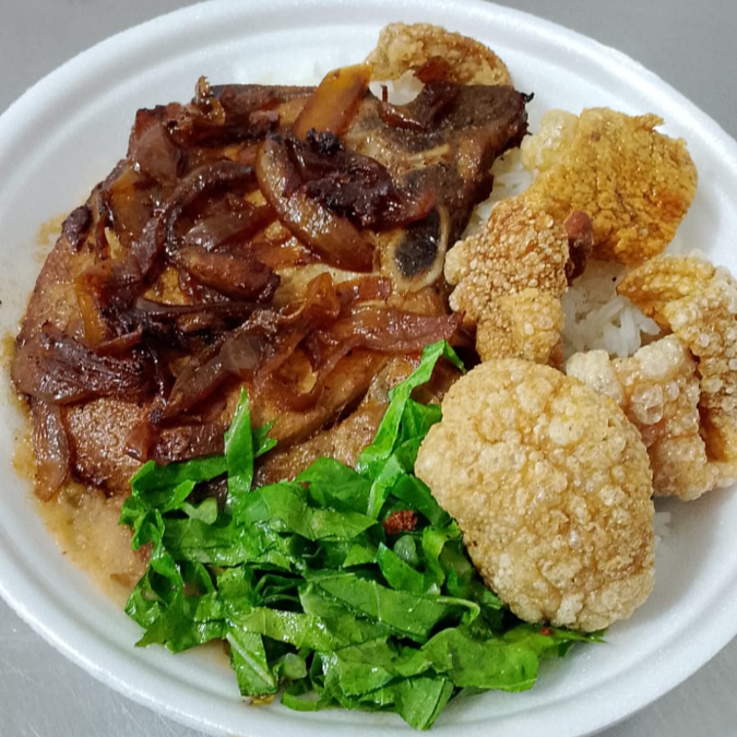 Tutu de feijão, arroz, bisteca suína, couve e torresmo crocante
