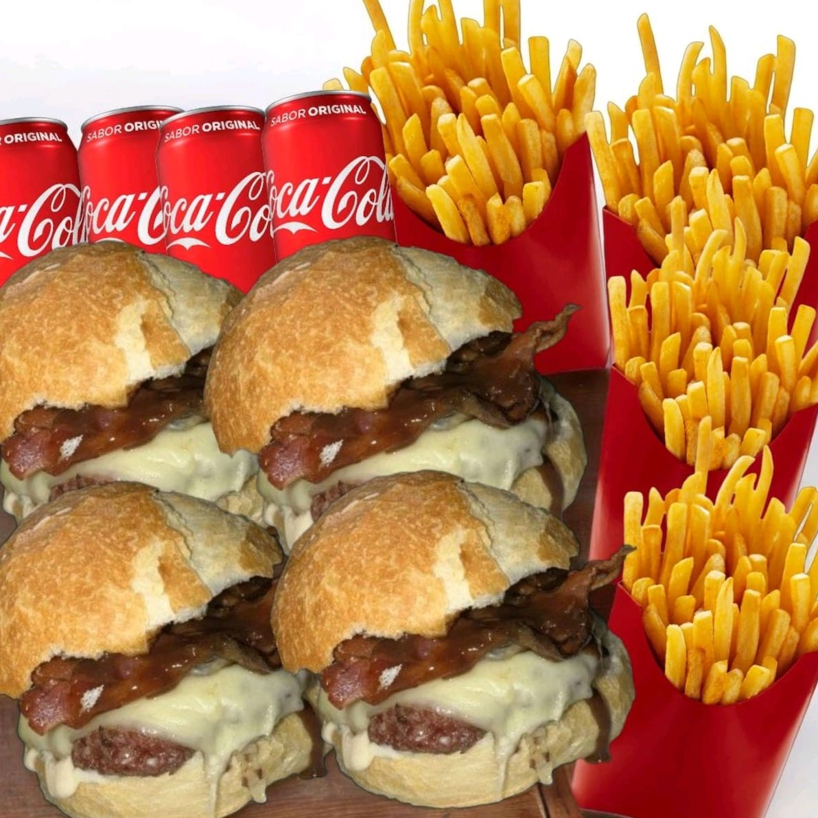 Perfeito pra juntar a turma ou a família. São quatro Burguers Clássicos à sua escolha, quatro batatas fritas crocantes e quatro refrigerantes gelados. Ideal pra quem curte boa comida, risada e aquele momento juntos que vale por tudo.