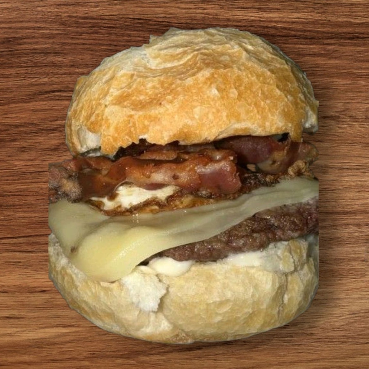 Hambúrguer artesanal feito na chapa, com blend suculento de 90g, bacon crocante, queijo derretido, maionese da casa e um toque especial de barbecue. Sabor marcante, equilibrado e daquele jeito que dá vontade de repetir.