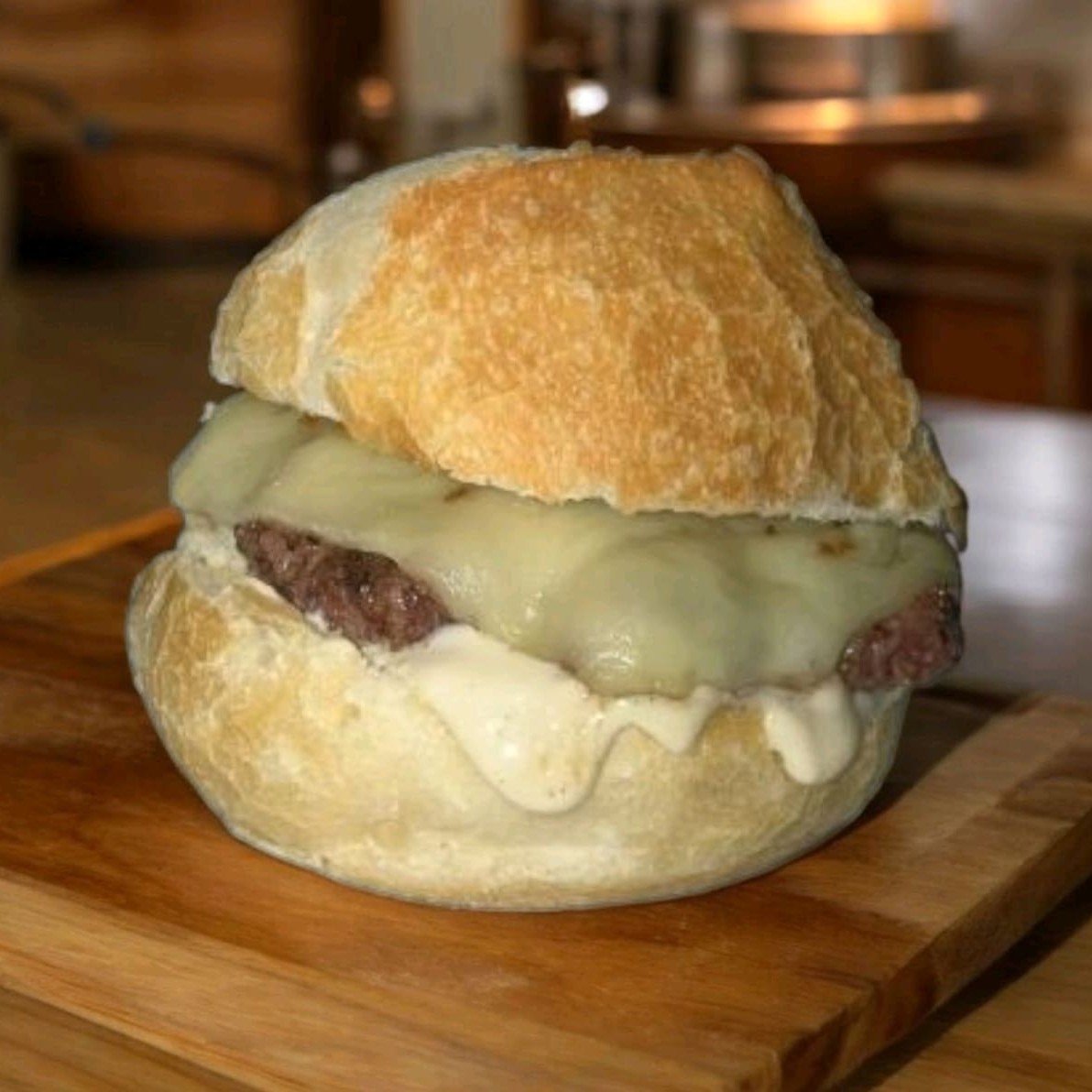 Hambúrguer artesanal feito na chapa, com blend suculento de 90g, queijo derretido e maionese da casa. Um clássico atemporal, direto ao ponto e cheio de sabor.