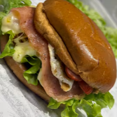 Hambúrguer , mussarela , presunto , ovo , milho , batata palha , alface e tomate.