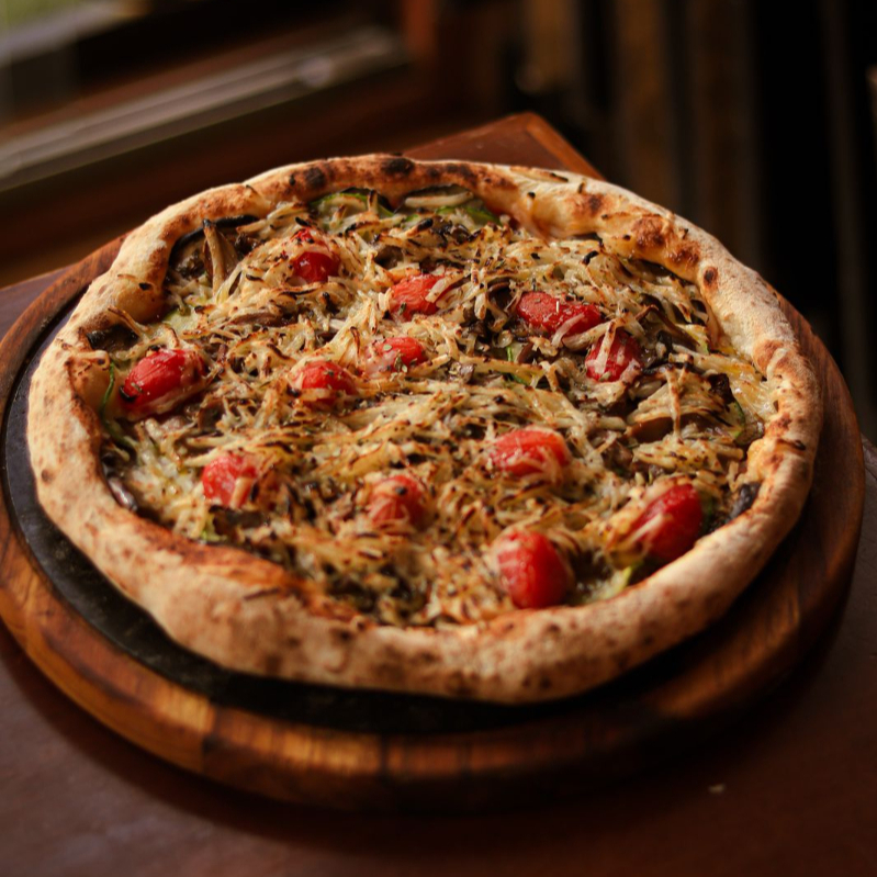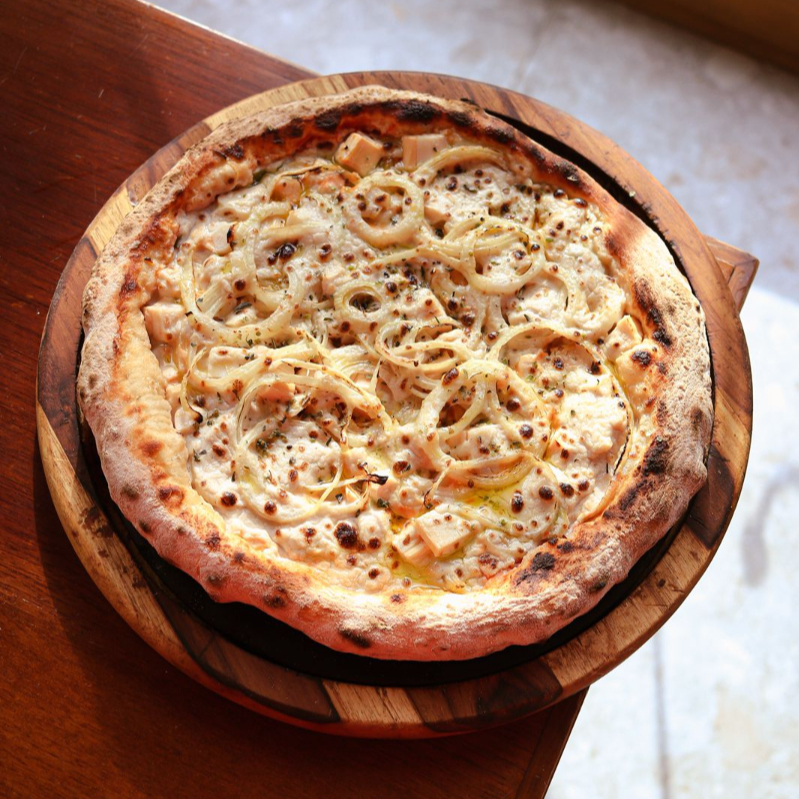 Acompanha molho quatro queijos e fatias de pão caseiro (400g).