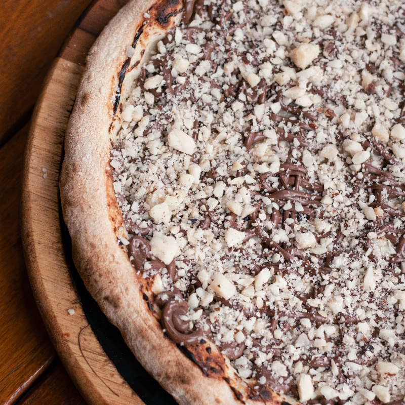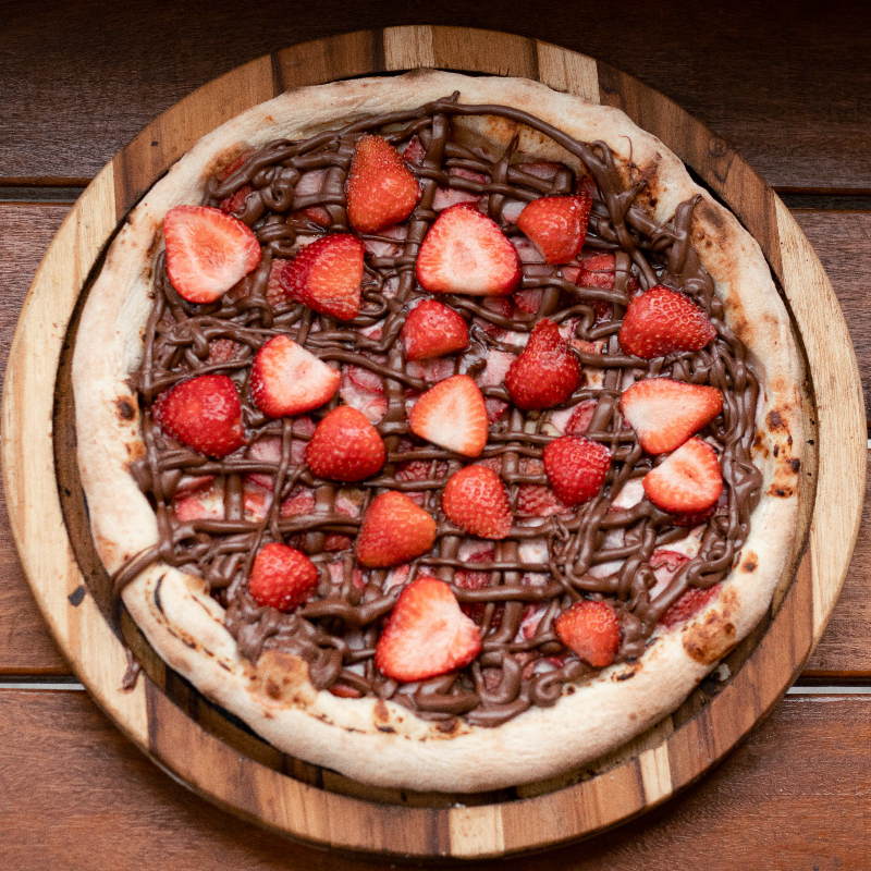 Doce de leite, mussarela de búfala, salpicado com côco ralado e cobertura de caramelo. Obs: Não fazemos trocas de ingredientes.
