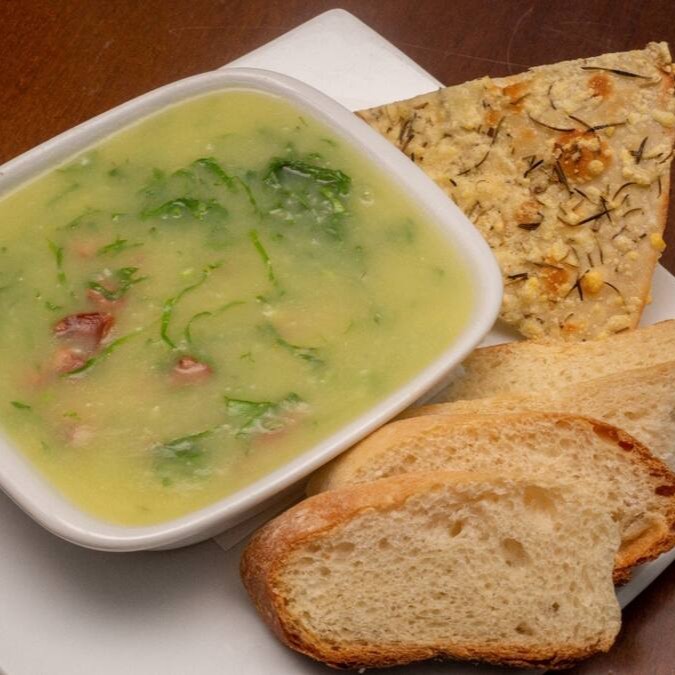 Acompanha molho quatro queijos e fatias de pão caseiro (400g).