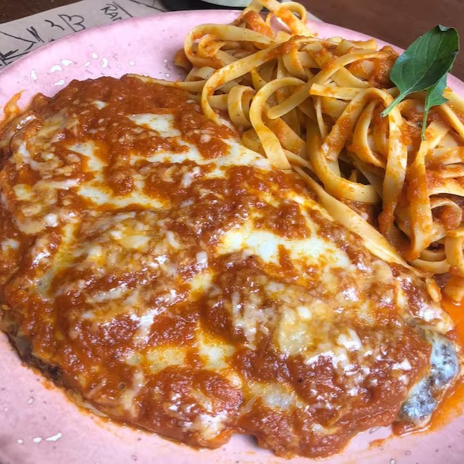 Berinjela Recheada com Molho Pomodoro e Gratinada com Parmesão- Acompanha arroz branco e saladinha