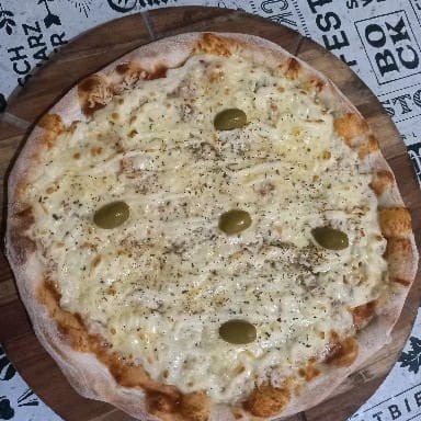 Molho de tomate, mussarela, catupiry, provolone, parmessao orégano e azeitonas.