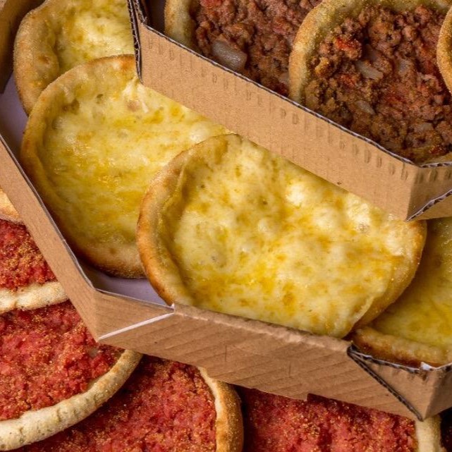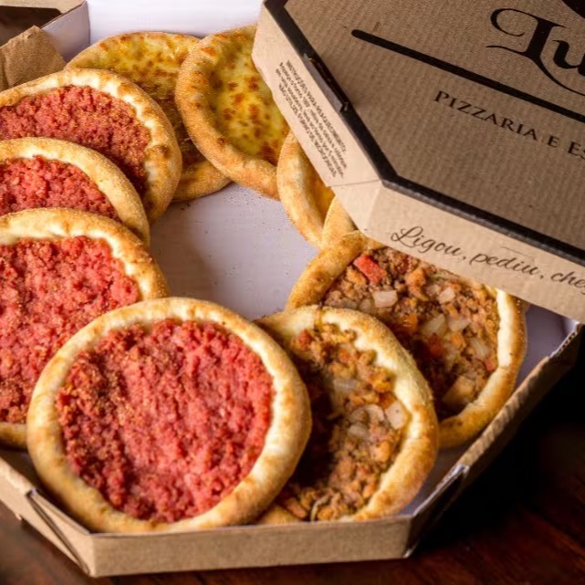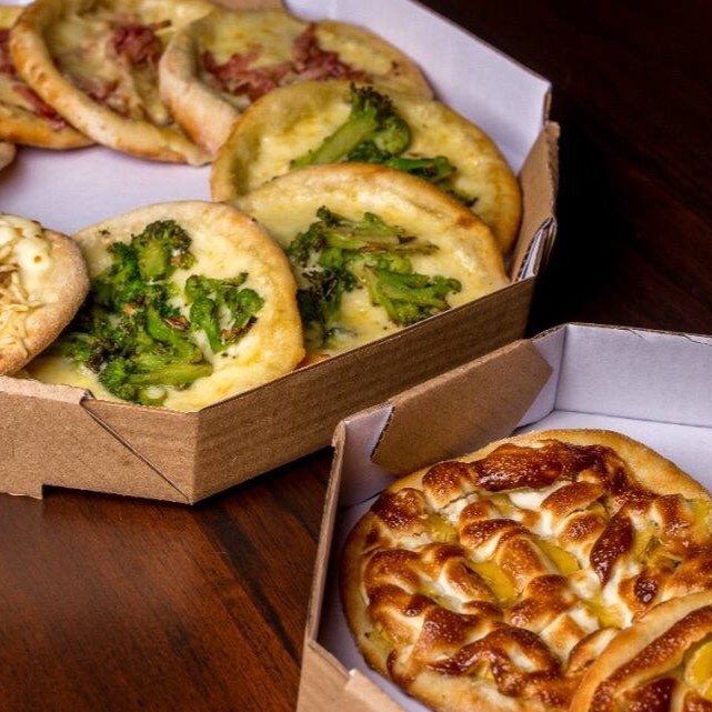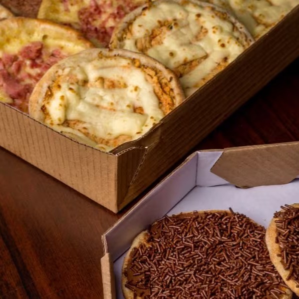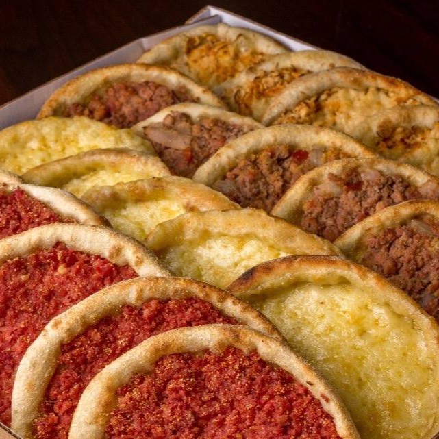 5 esfihas de calabresa, 5 esfihas de frango I, 5 esfihas de carne, 5 esfihas de mussarela.