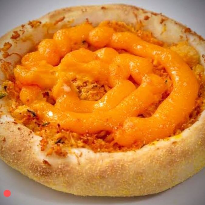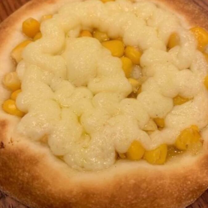 Queijo muçarela, milho verde, finalizada com Catupiry