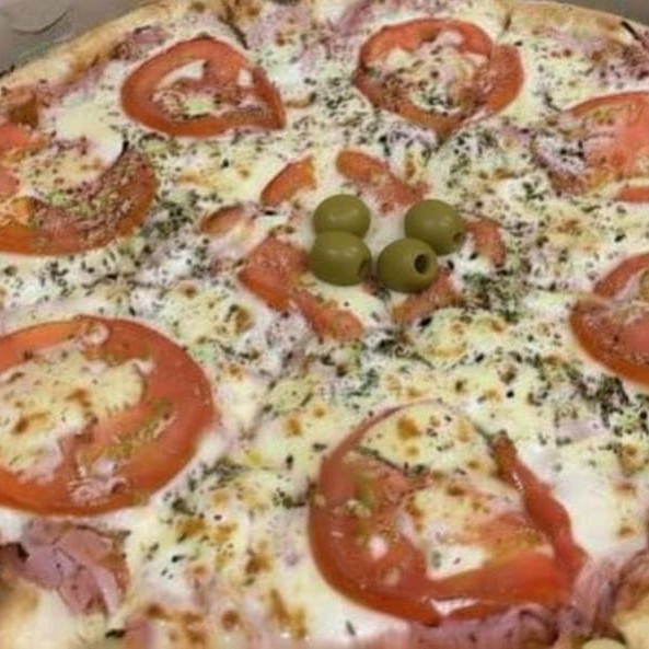Molho ,musarela ,presunto ,tomate,orégano ,azeitona