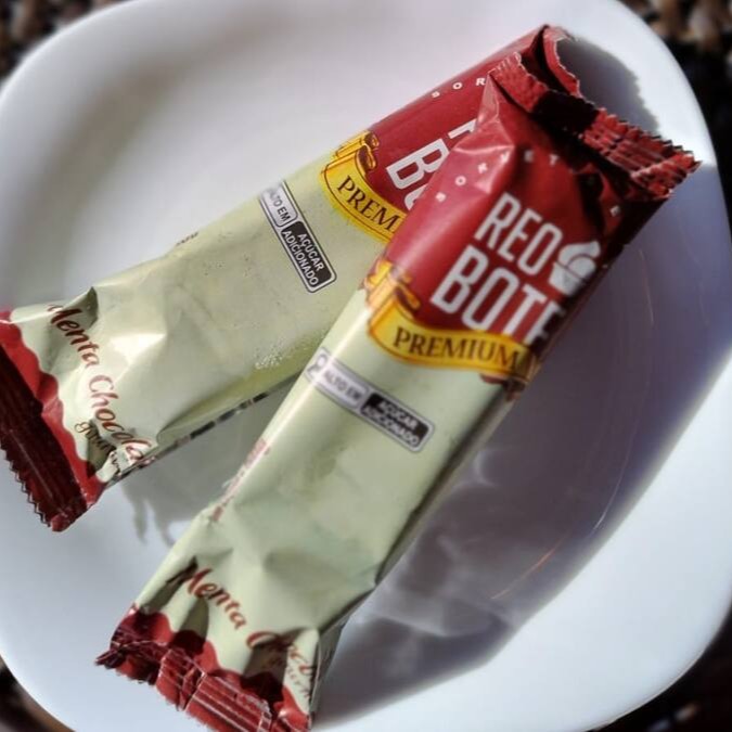 Picolé ao leite, com sabor de menta e casquinha de chocolate ao leite