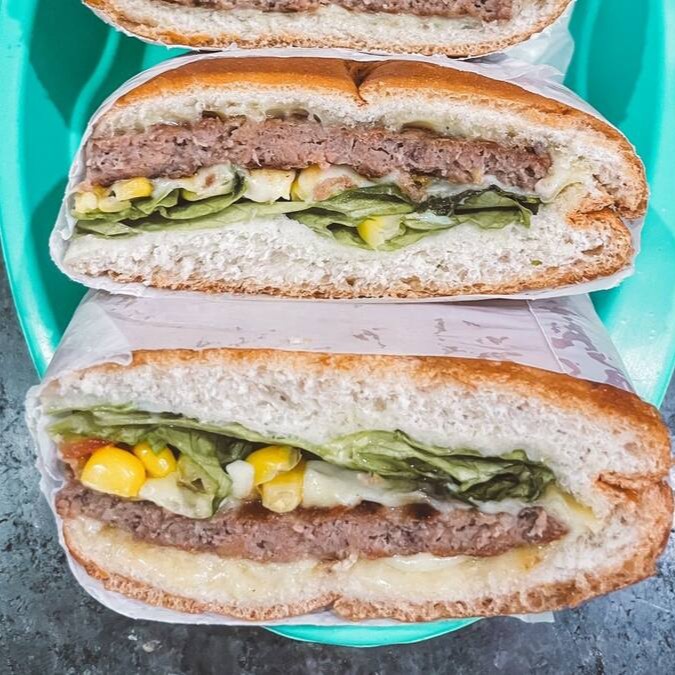 Pão,maionese,2 hamburguer,mussarela,milho,tomate,alface.