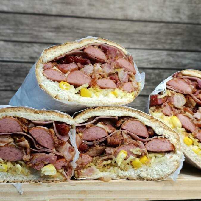 Pão,maionese,3 salsicha perdigão,mussarela,bacon,milho,batata palha
