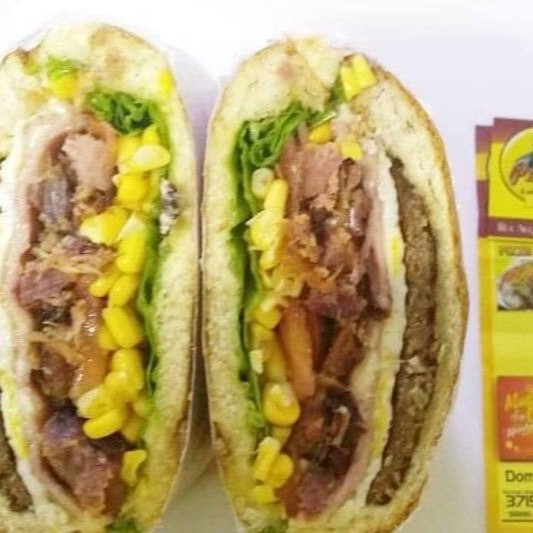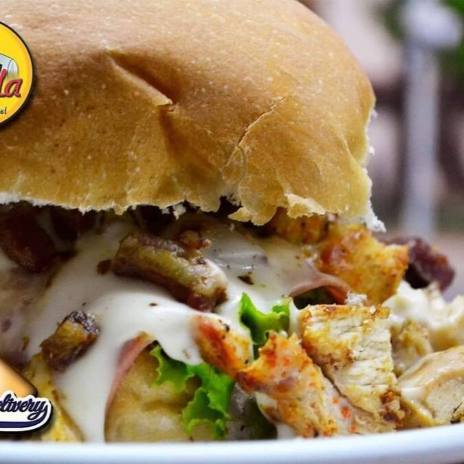 Pão de hambúrguer, filé de frango,bacon, Catupiry, presunto, mussarela,milho,batata palha e orégano