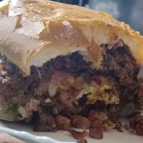 Hambúrguer,bacon, presunto e mussarela