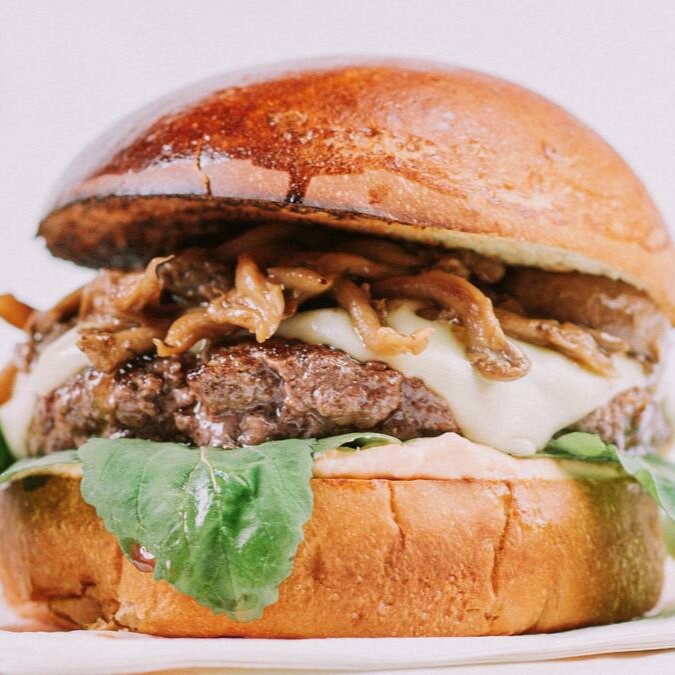 Pão brioche, suculento Hamburger Artesanal de 160gr, rucula, tomate, maionese, mix de cogumelos salteados, queijo muçarela.