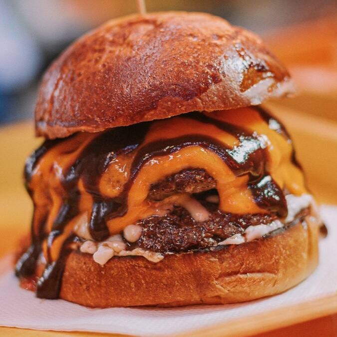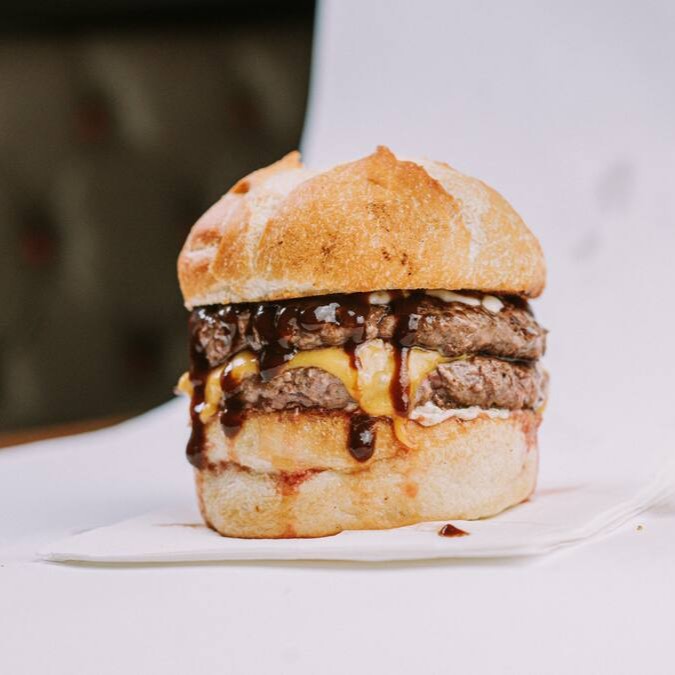 Pao brioche, dois suculentos Hamburgeres Artesanais de 160gr cada, queijo canastra ralado, queijo cheddar cremoso, maionese, molho barbecue.