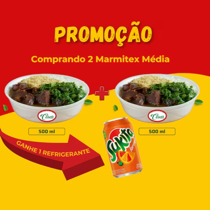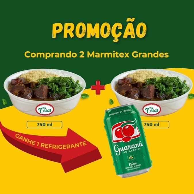 Comprando 2 marmitex grandes ganhe 1 refrigerante de lata Antarctica