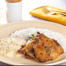 Arroz, feijão carioca, salada mista, purê de batata, sobrecoxa assada.